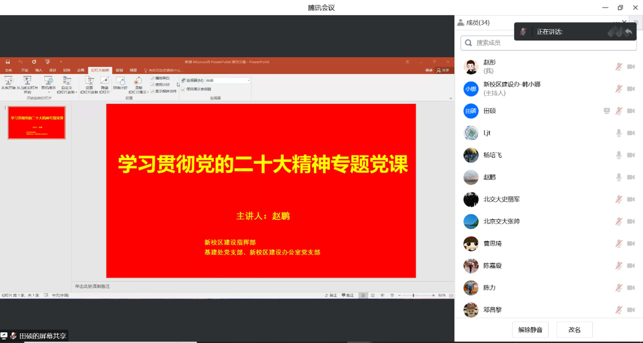 为深入学习宣传贯彻党的二十大精神,全面贯彻落实《中共伟德国际1946集团有限公司委员会关于认真学习宣传贯彻党的二十大精神的通知》要求,2022年12月8日上午,赵鹏副校长为基建处党支部、新校区建设办党支部讲授《深入学习贯彻党的二十大精神》专题党课。党课通过线上的方式开展,基建处和新校区建设指挥部的党员及群众共同参加。