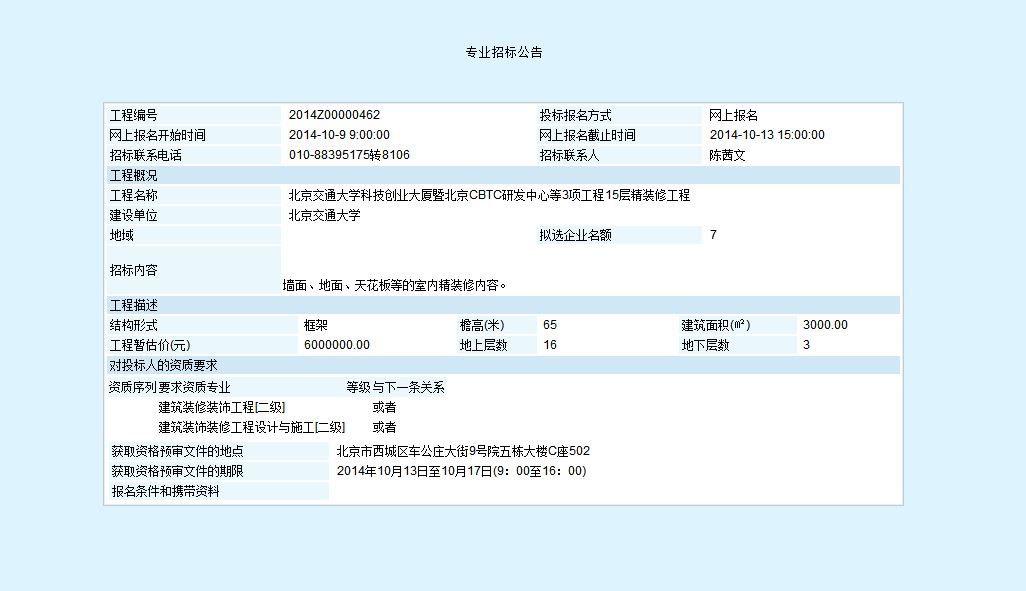 伟德国际1946集团有限公司科技创业大厦暨北京CBTC研发中心等3项工程15层精装修工程招标公告