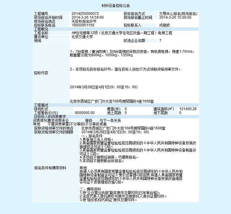 A#住宅楼等12项(伟德国际1946集团有限公司住宅区改造一期工程)电梯工程招标公告