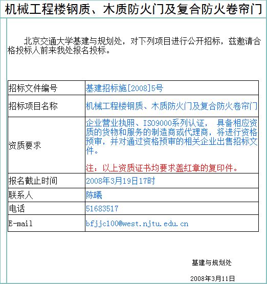 » 机械工程楼钢质、木质防火门及复合防火卷帘门
