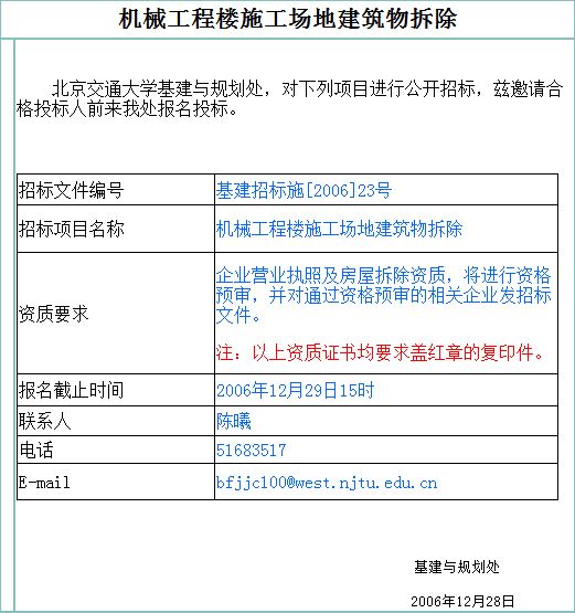 » 机械工程楼施工场地建筑物拆除
