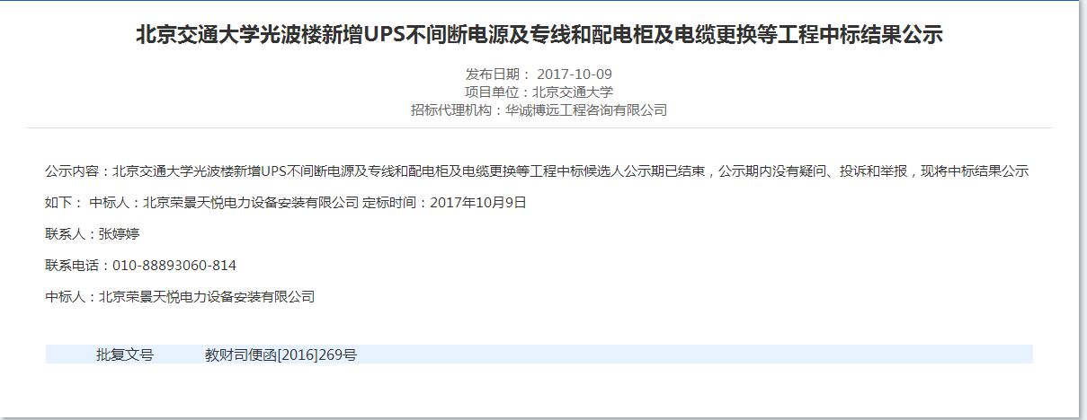 伟德国际1946集团有限公司光波楼新增UPS不间断电源及专线和配电柜及电缆更换等工程中标结果公示