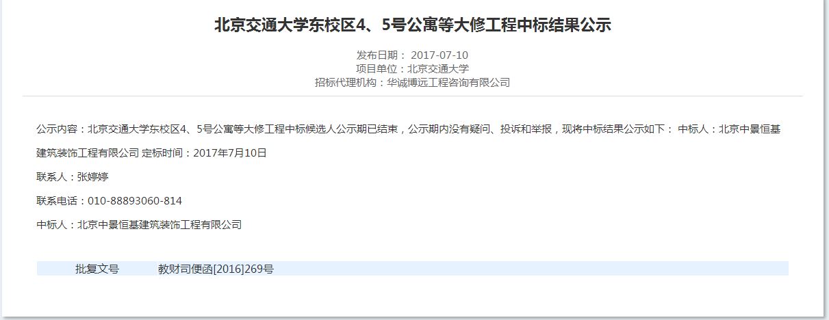 伟德国际1946集团有限公司东校区4、5号公寓等大修工程中标结果公示