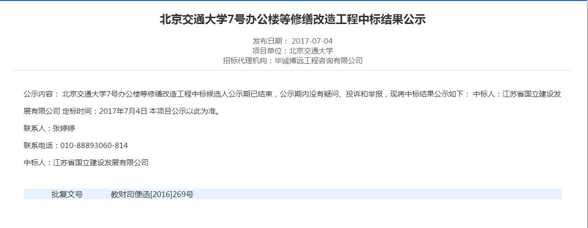 伟德国际1946集团有限公司7号办公楼等修缮改造工程中标结果公示