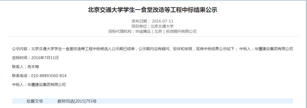 伟德国际1946集团有限公司学生一食堂改造等工程中标候选人公示