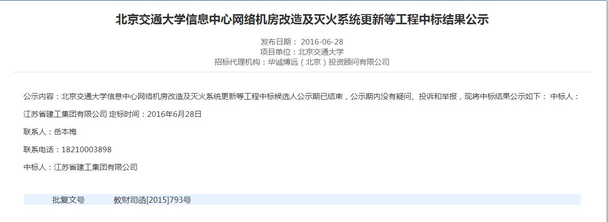 伟德国际1946集团有限公司信息中心网络机房改造及灭火系统更新等工程中标结果公示