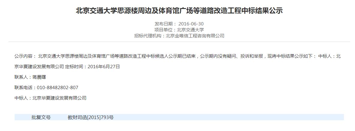 伟德国际1946集团有限公司思源楼周边及体育馆广场等道路改造工程中标候选人公示