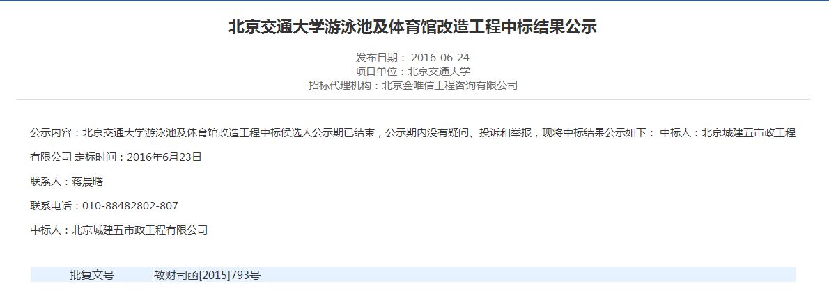伟德国际1946集团有限公司游泳池及体育馆改造工程中标候选人公示