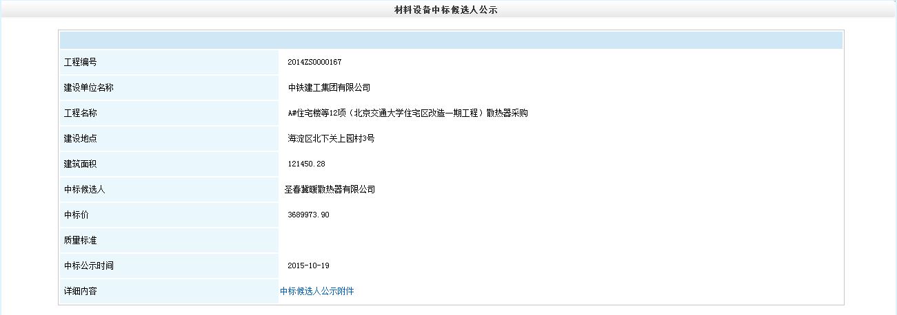 » A#住宅楼等12项(伟德国际1946集团有限公司住宅区改造一期工程)散热器采购中标公示