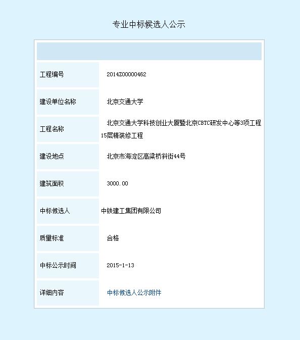 伟德国际1946集团有限公司科技创业大厦暨北京CBTC研发中心等3项工程15层精装修工程中标公示