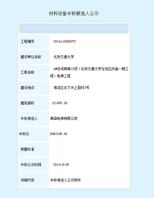» A#住宅楼等12项(伟德国际1946集团有限公司住宅区改造一期工程)电梯工程中标公示