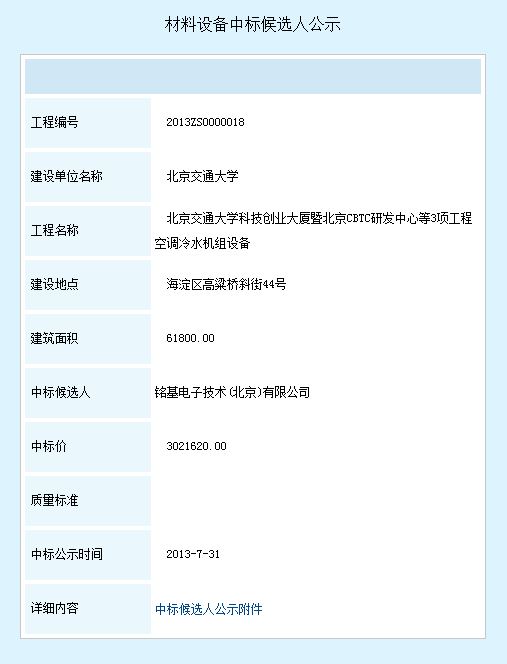 伟德国际1946集团有限公司科技创业大厦暨北京CBTC研发中心等3项工程空调冷水机组设备中标公示