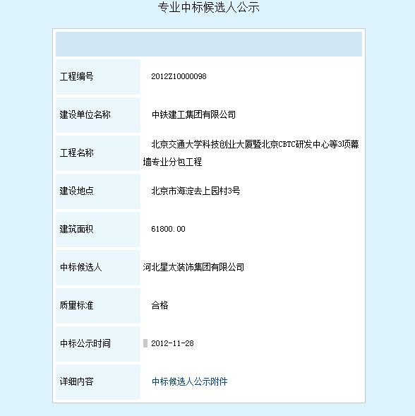 » 科技创业大厦暨北京CBTC研发中心等3项幕墙专业分包工程