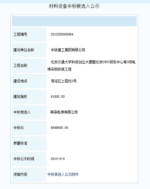 伟德国际1946集团有限公司科技创业大厦暨北京CBTC研发中心等3项电梯采购安装工程