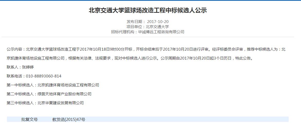 伟德国际1946集团有限公司篮球场改造工程中标候选人公示