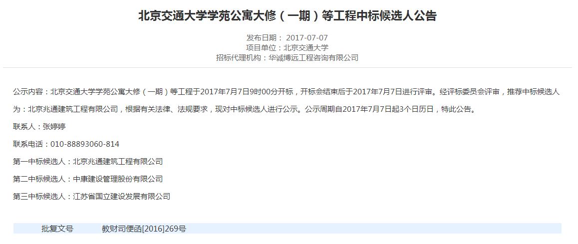 » 伟德国际1946集团有限公司学苑公寓大修(一期)等工程中标候选人公告