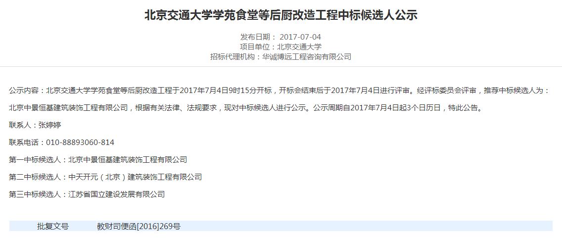 伟德国际1946集团有限公司学苑食堂等后厨改造工程中标候选人公示